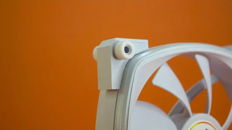Крепежные кронштейны тоже весьма забавной формы — они представляют собой уголок, который пронзает втулка и в нее уже вкручиваются винты. Скорее всего монтаж на виброгвозди будет крайне затруднителен здесь, если вообще возможен. На втулку с обоих сторон надеты антивибрационные чехлы/накладки так что соприкосновения с голым пластиком с очень большой вероятностью не должно быть.